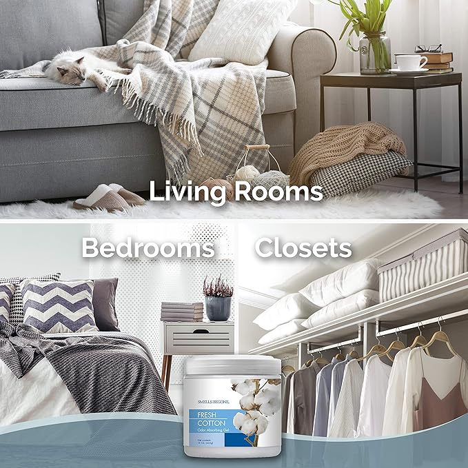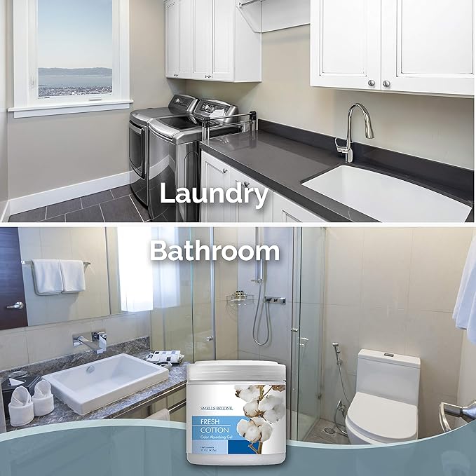 SMELLS BEGONE 15oz Gel Odor Eliminator - Absorb & Remove Tough Odors in Pet Areas, Bathrooms, Basements, Garage, Cars, RVs & Boats - Eliminate Odors Quickly (2-Pack, Fresh Cotton)