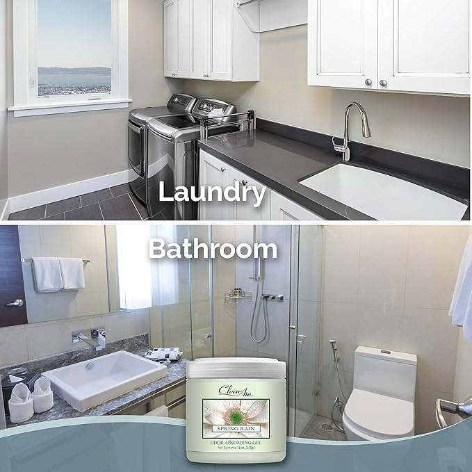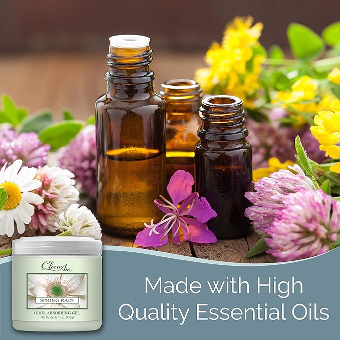 Clear Air 15oz Gel Odor Eliminator - Absorb & Remove Strong Odors from Pets, in Bathrooms, Basements, Garage, Cars, RVs & Boats - Eliminate Tough Odors with Essential Oils (Spring Rain, 2-Pack)
