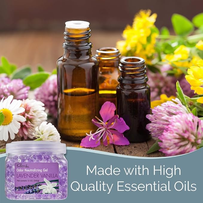 Clear Air Odor Eliminator Gel - 12 oz, Pack of 2 - Air Freshener Made with Essential Oils - Eliminates Odors in Bathrooms, Cars, Boats, RVs & Pet Areas - Lavender Vanilla Scent