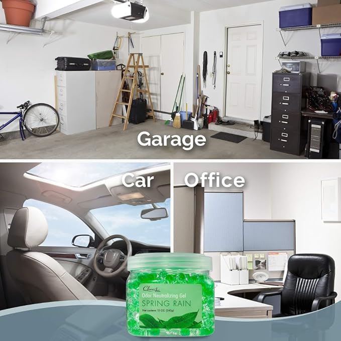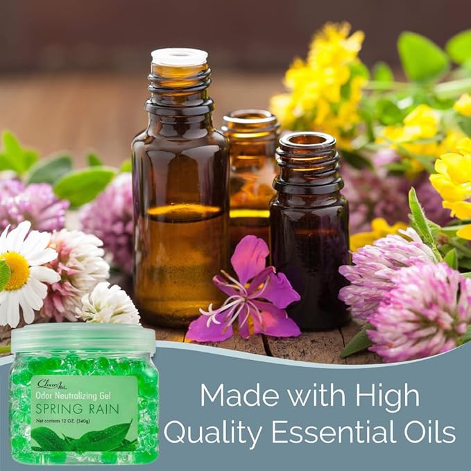 Clear Air Odor Eliminator Gel - 12 oz, Pack of 2 - Air Freshener Made with Essential Oils - Eliminates Odors in Bathrooms, Cars, Boats, RVs & Pet Areas - Spring Rain Scent