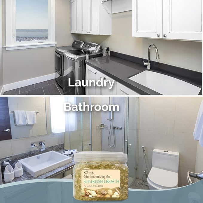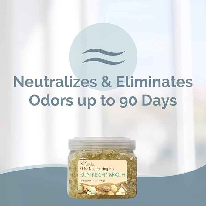 Clear Air Odor Eliminator Gel - 12 oz, Pack of 2 - Air Freshener Made with Essential Oils - Eliminates Odors in Bathrooms, Cars, Boats, RVs & Pet Areas - Sun-Kissed Beach Scent