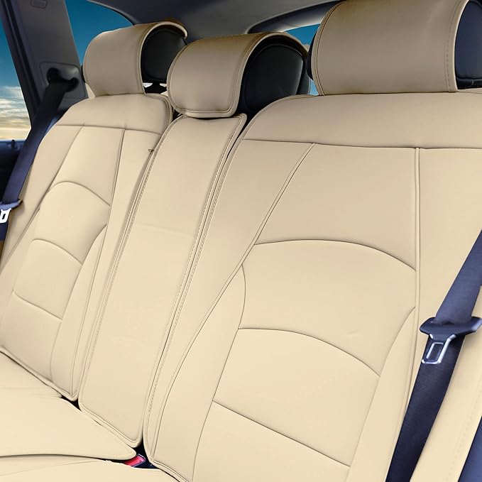 FH Group Ultra Comfort Highest Grade Faux Leather Seat Cushions (Solid Beige) Rear Set with Gift – Universal Fit for Cars Trucks & SUVs