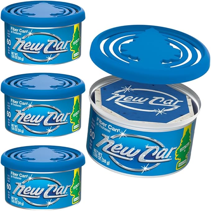 LITTLE TREES Car Air Freshener | Fiber Can Provides Long Lasting Scent for Auto or Home | Recycled Fiber | New Car Scent, 4 Air Fresheners