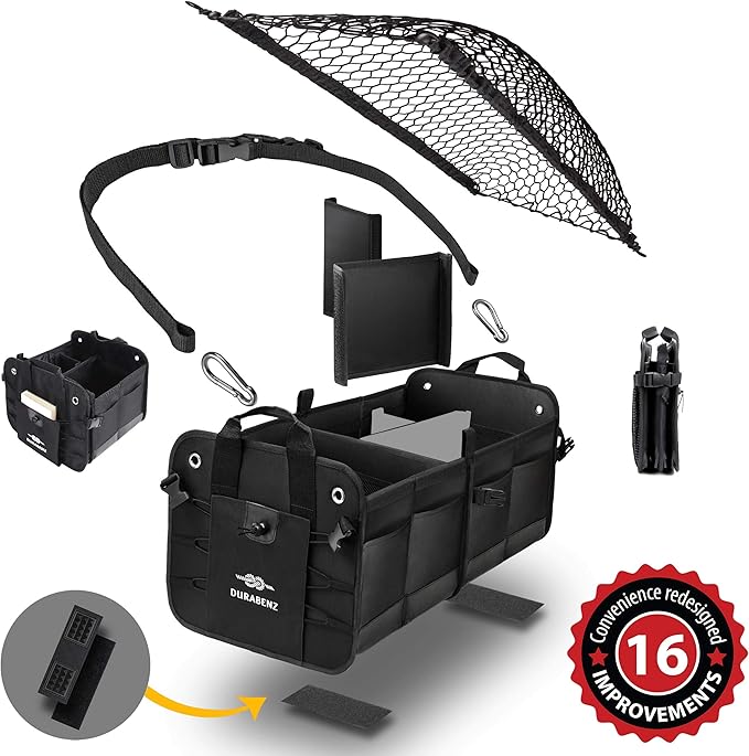 - Compact yet spacious two-section trunk organizer designed in the US. Ideal gift for commuters, families and drivers who want reliable everyday car storage without bulky multi-module systems