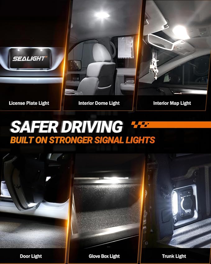 - 【800% Brighter Than Halogen Bulb】 Sealight is equipped with a 3030 high-performance light bulb chip. 6000K super bright white light. 360 ° lighting angle, no dark spots, and huge brightness. Bring pure white and ultra bright light output to your car.