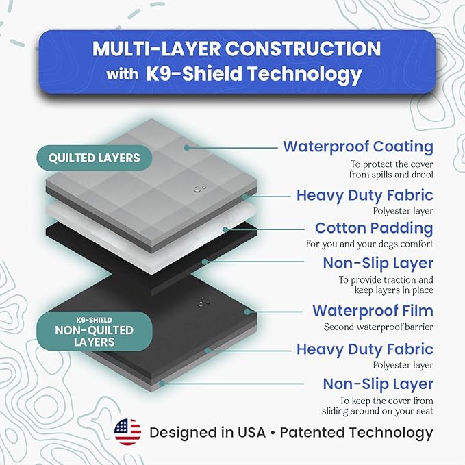 - WATERPROOF, NON-SLIP & EASY TO CLEAN – Built with K9-Shield waterproofing to block spills, dirt, and pet hair (seams and zippers not watertight), this cargo liner features a non-slip backing that stays put even on busy trips. Installs in minutes with quick-release clips and cleans easily by hosing down, wiping, or machine washing (Not chew-proof). Convenience features and easy cleanup make life simpler for pet parents and families.