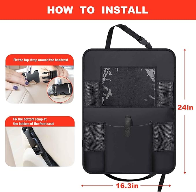- Easy Installation : Axelect car backseat organizer for kids has two adjustable straps on top and bottom with heavy duty quick-release buckles to ensure a perfect fit for most vehicles