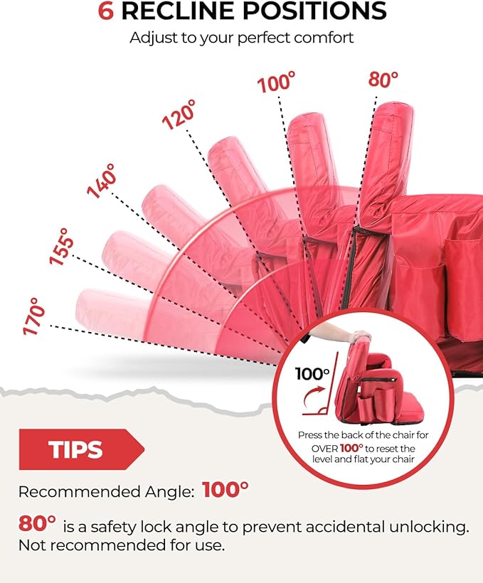 - 6 Adjustable Recline Positions: No more worries about back, neck, and shoulder strain. Find your perfect angle with 6 recline options for your desired comfort and support—from fully upright to completely flat. Perfect for stadiums, parks, beaches, camping, fishing, and more.
