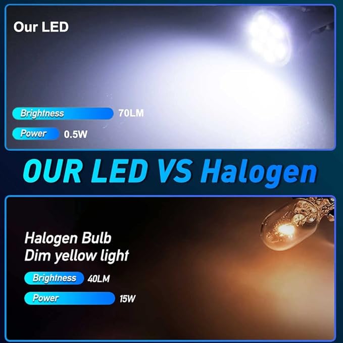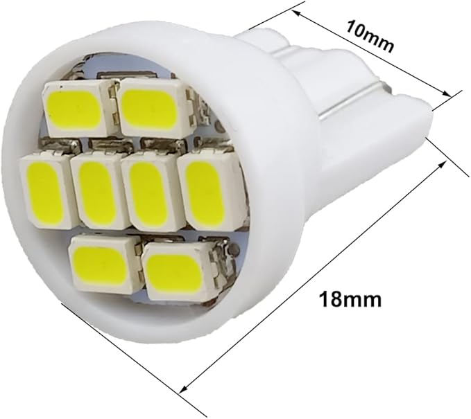 - Super Bright: T10 194 LED Light Bulbs Pack include 10 pcs of high quality LED interior bulbs, each designed with 8 LEDs, 360 degree lighting angle, no blind spot, higher brightness, 3 times halogen brightness, updates your car interior to a modern look.