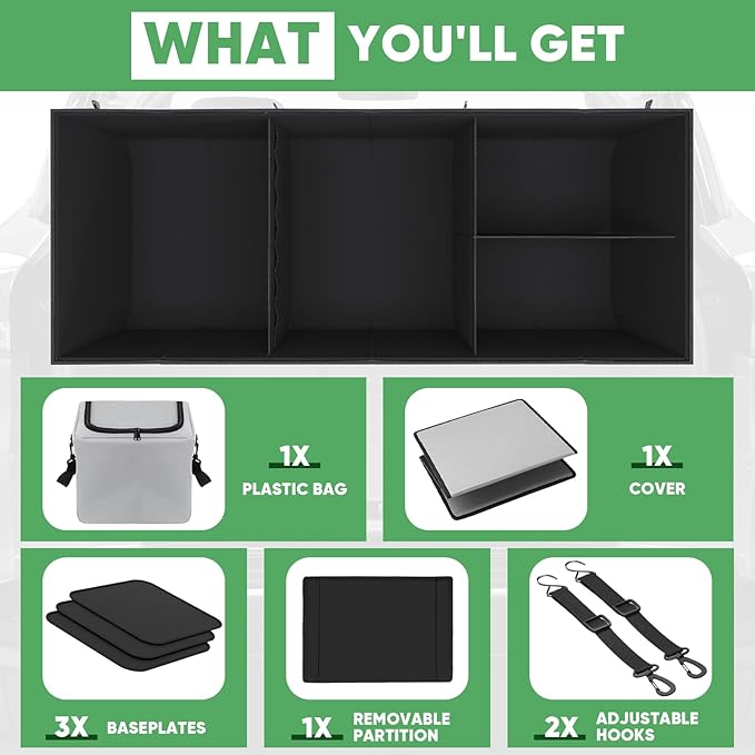 - 🚗【BUY WITH CONFIDENCE】- If for any reason you're not completely satisfied with our car trunk organizer, please contact us in time, and we will solve it for you as soon as possible. Please rest assured to buy