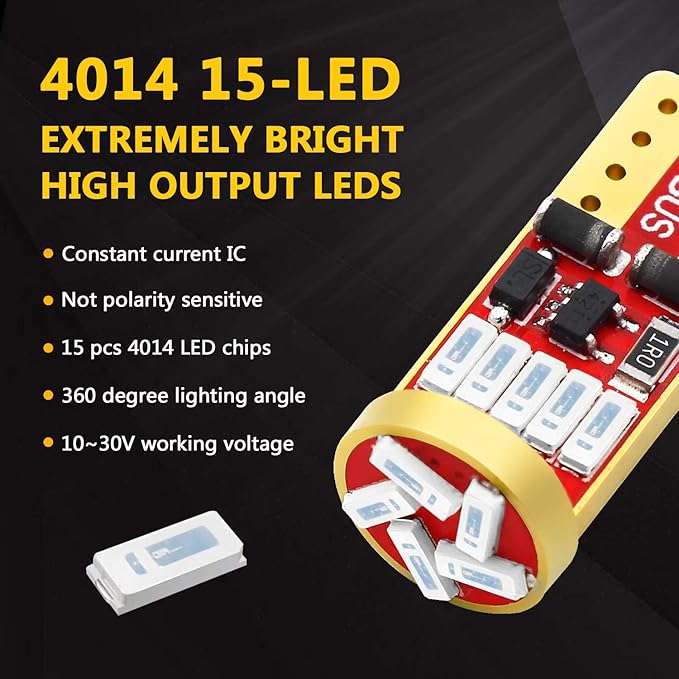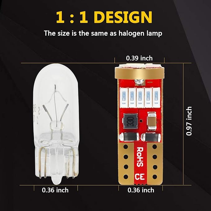 - Wide application: used for replacing stock oem 194 168 T10 dome light, map light, trunk cargo light, license plate light, side marker light, interior door light, reading light, glove box light, parking light, step/courtesy light, vanity mirror light etc.