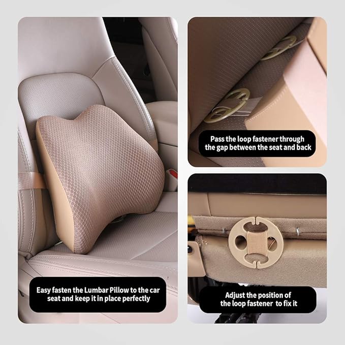 Memory Foam Lumbar Support Pillow for Car - Back Support for Car Seat (Beige)