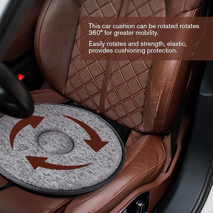 - This anti- slip base seat cushion freely spins 360 degrees, making it easy to get out of the car, chairs at home, bed, or even airplane seats.