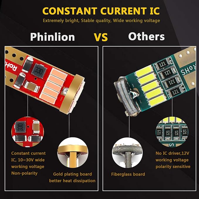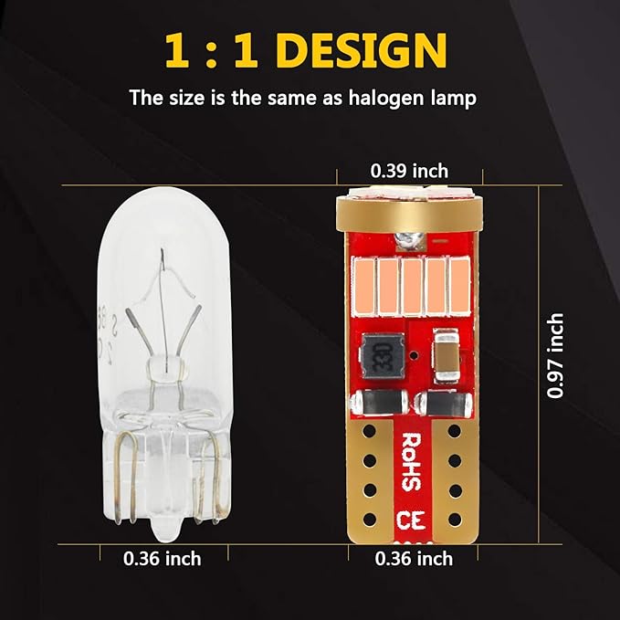 - Fit bulb sizes: W5W, T10, 168, 175, 192, 194, 147, 152, 158, 159, 161, 184, 2821, 2825, 2827, 2886X, 3652, 12256, 12961, 12396, 12396NALL, W3W, 17097, 17177, PC161, PC168, PC175, etc. Easy to install, Canbus error free design, for 99% of vehicles, just plug and play
