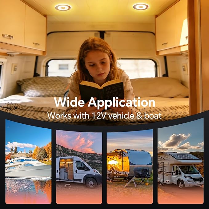 - Slimline Design: Thickness only 5/16”, super thin light fixture helps to extend RV boat interior space. Mirror effect panel light is an nice decoration to the interior space, but also very functional dome light