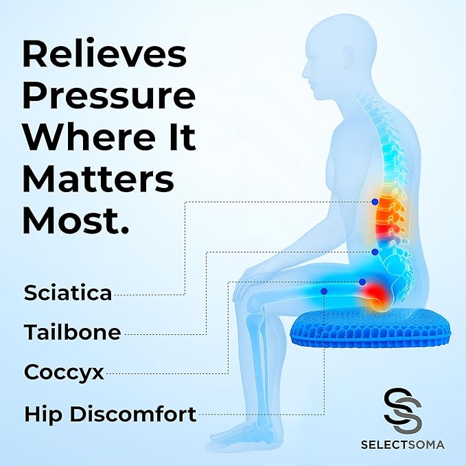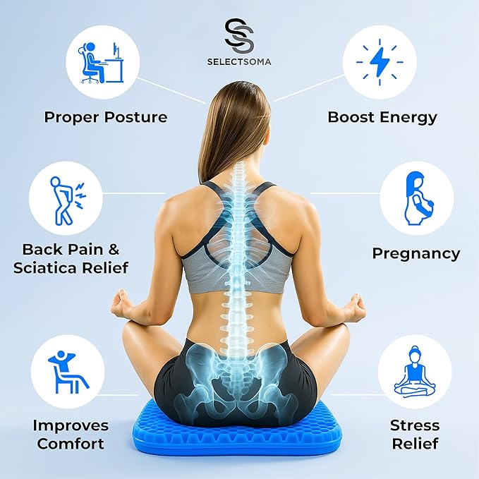 SelectSoma Super Large Gel Seat Cushion for Long Sitting - 18.5" x 17.5" - Breathable Cooling Design - Pressure Relief for Sciatica, Tailbone & Back - Office Chair, Wheelchair, Car & Truck Cushion