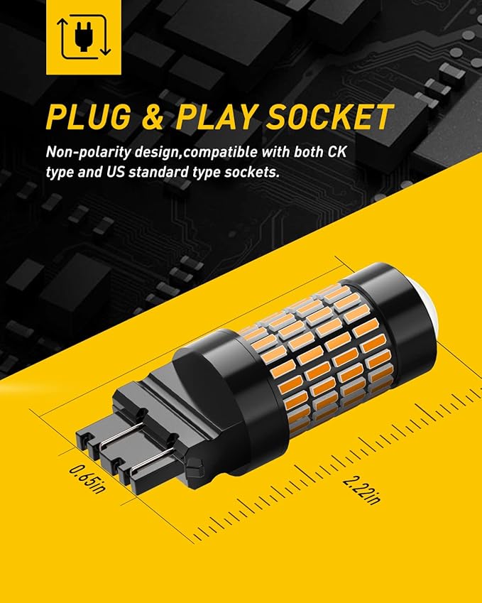 - 【INSTALLED IN MINUTES】Non-polarity design, plug and play easy installation. The 3457 amber led bulb compatible for both US standard and CK socket, fit for 3156, 3157, 3056, 3356, 3456, 4156, 3047, 3157A, 3057, 3155, 3157NA, 3357, 3457, 3457A, 4057, 4114, 4157, 4157NA, etc