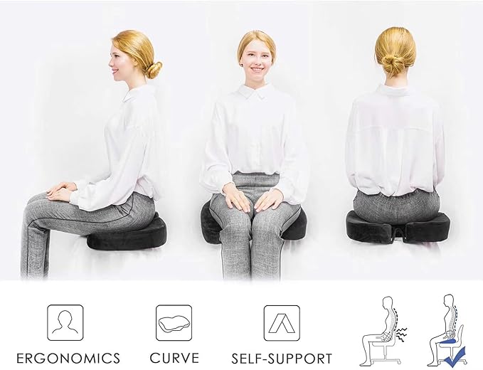 - ITโS A COMMON BYPRODUCT OF FATIGUE - You might slouch or begin leaning forward at an uncomfortable angle at your desk, and you might not even register the discomfort right away because your mind is intently elsewhere. This comfort seat cushion features ergonomic design to help soothe already-existing aches and pains that came about after months or even years of slouching and leaning