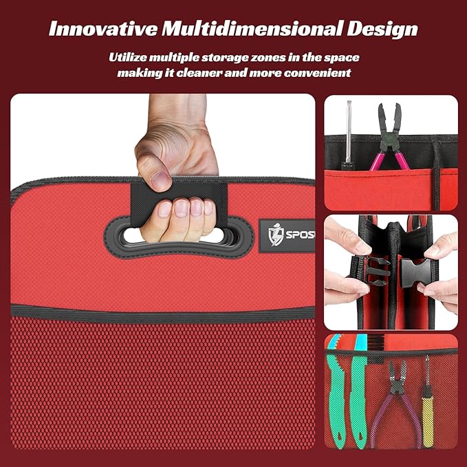 - [MULTI-PURPOSE FOLDABLE]: Our collapsible trunk organizer is easy to fold. You can place it not only in the trunk, but also in the front or rear seats of the vehicle. When you don't need to use it, you can fold it up for easy carrying and storage