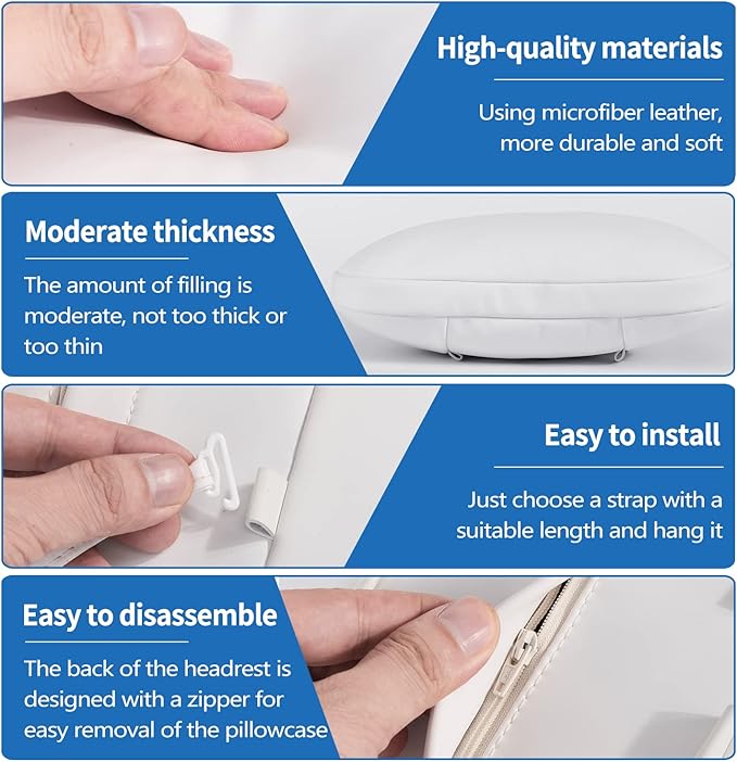 - 👍[Upgraded Hidden Straps]——In order to avoid the embarrassment of exposed headrest straps, we design straps that can be hidden between the car seat and the headrest. We also come with elastic straps for replacement according to usage habits.