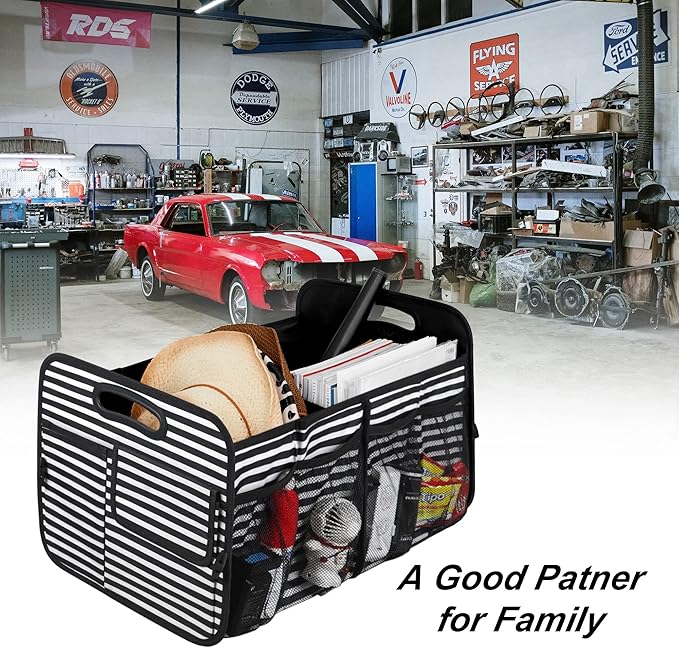 - 【Trunk Organizer for Car】:This is the optimal solution for maintaining a clean car interior as car accessories. Suitable for all vehicle types, like trucks, SUVs, vans, jeeps, cars, etc., and it's fantastic for transporting and arranging groceries, toys, athletic equipment, tools, and more in your trunk. Eliminate trunk clutter situation with this car organizer.