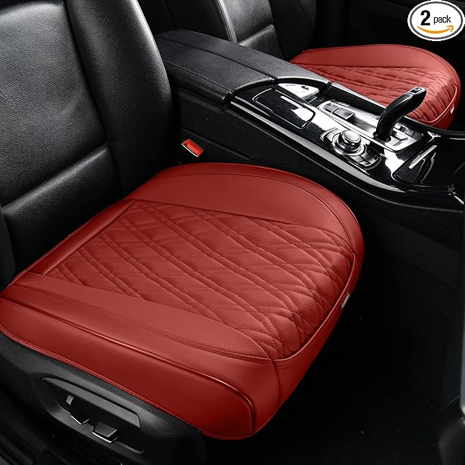 2PCS Seat Covers for Cars, Automotive Seat Covers & Accessories, Breathable Nappa Leather Car Seat Covers Cushion Protector Interior Décor for Women and Men, Wine Red
