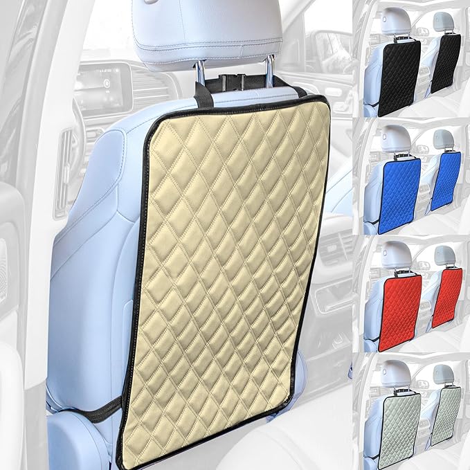 - SLEEK AND LUXURIOUS DESIGN: Our seat back protector provides what others can't: Protection for the back of your car's seats without sacrificing the aesthetic of your car's interior. The diamond stitched Faux leather provides a sleek look.