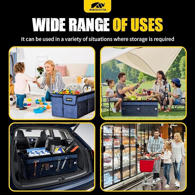- [MULTI-FUNCTION USE]: You can use the trunk organizer for car in different scenarios, bringing more convenience to your life. It can be used to store your clothes or daily necessities or it can play a key role in your picnic or camping, and more