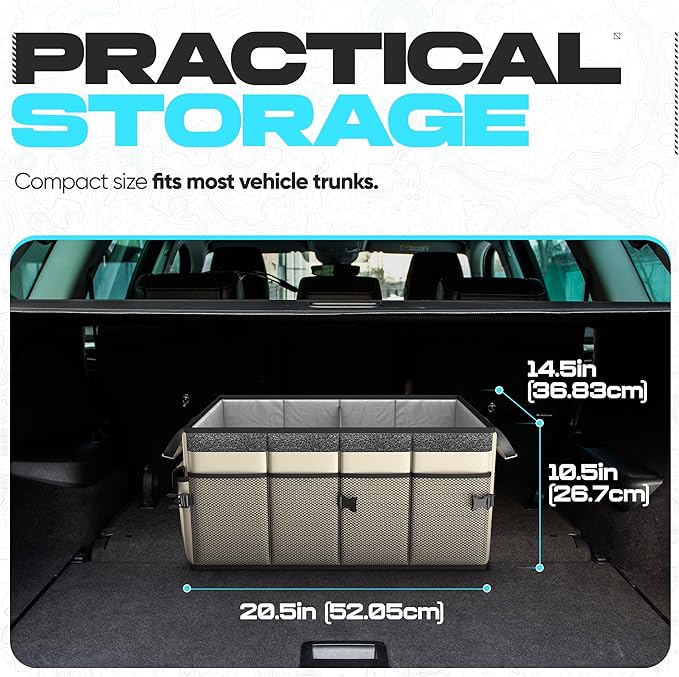 - Collapsible with Removable Lid – You can move trunk storage to the backseat, front seat, or center of your vehicle since it is collapsible to 1 compartment. The detachable lid keeps your goods out of sight for added security.
