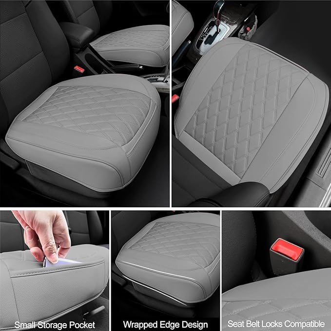 - PU Leather Soft & Durable: Our bottom seat covers for cars are made of soft PU leather, providing soft and durable protection for your car interior for long-term use. A built-in layer of elastic sponge provides maximum comfort for your hips during your driving. When the bottom car seat covers get dirty, just wipe them gently with a dry towel.