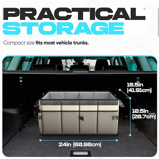 - Multifunctional – Fortem Trunk organizers and storage make car organization easy and simple. Organize a variety of products from groceries to office supplies, accessories (handbags, shoes,) or toys for kids. Consolidate the mess in your trunk and make room for your cooler or camp gear.