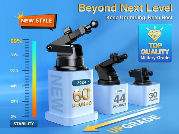 - 【Larger Suction Cup, Strongest Suction】The diameter of the suction cup has been increased from 2.5in to 2.8in, and the PU adhesive has been applied to increase the suction power by 44%. Over 60 pounds of suction means even the heaviest phones are secure on bumpy roads. The suction cup is easy to remove and can be washed clean and reused (Note: NEW upgraded suction cup can be directly adsorbed to dash without pad!)