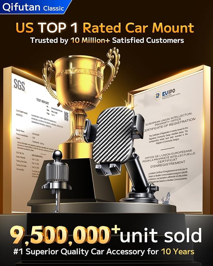 Qifutan Car Phone Holder Mount Phone Mount for Car Windshield Dashboard Air Vent Universal Hands Free Automobile Cell Phone Holder Fit for iPhone Smartphone Camera Mounts