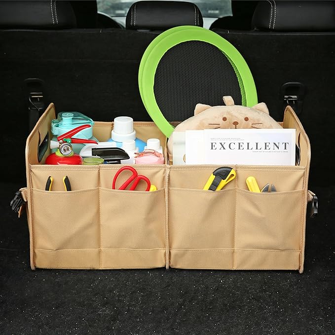 - Features: Trunk organizer and storage make car organization easy and simple. Organize a variety of products, the storage box has multiple compartments for groceries, tools, office supplies, accessories or toys and more