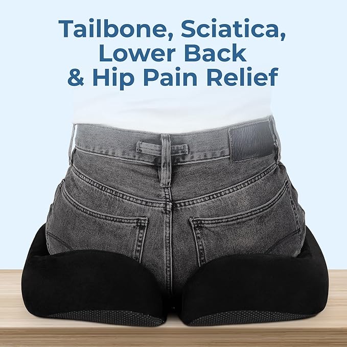 - šš¹š¼šš±-š¹š¶šøš² šš¼šŗš³š¼šæš & š£šæš²ššššæš² š„š²š¹š¶š²š³ ššššµš¶š¼š»: Distributes your weight evenly. Takes the pressure off your tailbone. Alleviates lower back, coccyx, sciatica, lumbar, and pelvic pain