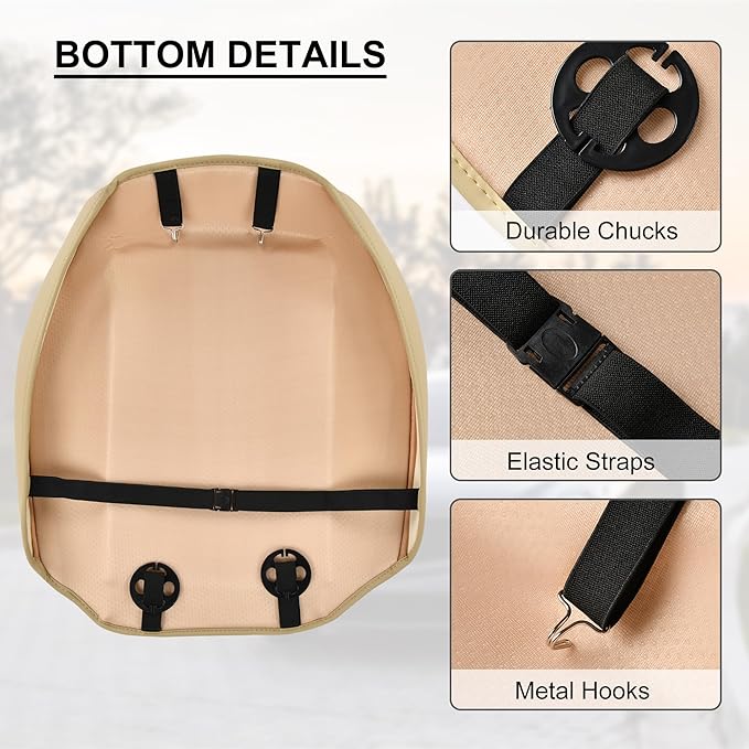 - Easy to Install: Each pack comes with 2 pcs of front seat bottom covers, and a hardware bag of steel hooks and chucks. An installation manual. Finish installation in a few minutes, we recommend that you watch our instructional video before installation