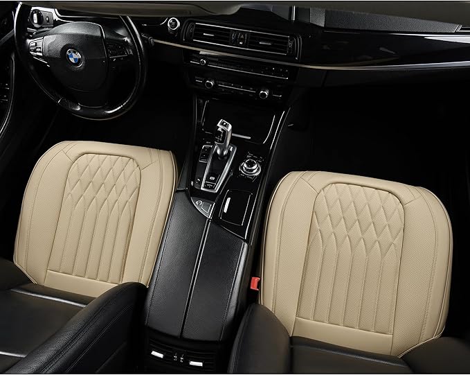 2 Pack Front Car Seat Bottom Covers, Universal Auto Seat Cushions, Nappa Leather Full Wrapping Edge Compatible with Most of Vehicles - SUVs/Sedans/Pickup Trucks, Beige