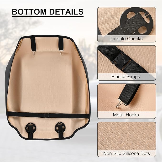 - Easy to Install: Each pack comes with 2 pcs of front seat bottom covers, and a hardware bag of steel hooks and chucks. An installation manual. Finish installation in a few minutes, we recommend that you watch our instructional video before installation