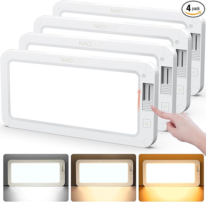 - [3 COLOR TEMPERATURE & MULTI-LEVEL ADJUSTABLE BRIGHTNESS] - 3 color options are available with rv light- Cool White(crisp, clean white illumination), Natural White(balance between bright and warm) and Warm White(softer light with hints of yellow). Also, Slide the button to multi-level adjust the brightness from 20% to 100% to further customize the light source based on your mood.