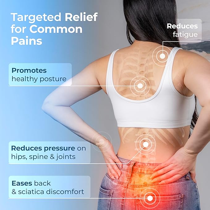 - Ergonomic U-Cutout for Tailbone & Back Pain Relief – Coccyx design relieves tailbone pain, lower back pain, and sciatica by reducing pressure while sitting.