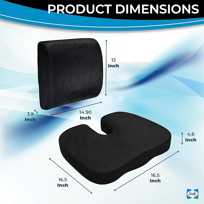 - Comfort and Support for Office Chairs – This cushion provides effective back and seat support, suitable for professionals, seniors, or anyone needing extra comfort while seated. Designed for use at work, during travel, or at home, it helps promote relief and comfort throughout the day.