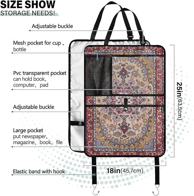 - Premium Material: Crafted from high-quality archaic nylon , our car storage and kick mat is built to last. Its robust design shields your seats and car interior from scuffs and dirt. Seat back organizer waterproof and dust-resistant, keeping your beloved vehicle clean and pristine