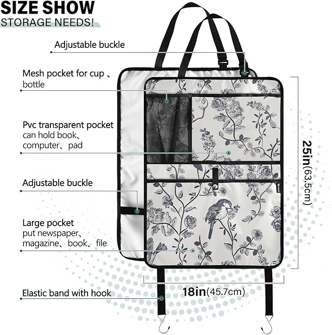 - Design Detail:The plastic buckles on the top and waist sides are highly concealed and do not affect the comfort of the front seat. The bottom hooks are strengthened, providing stability and peace of mind. Automotive Seat Back Organizers nylon material is easy to clean and acts as an anti-kick pad to keep the seat clean and tidy