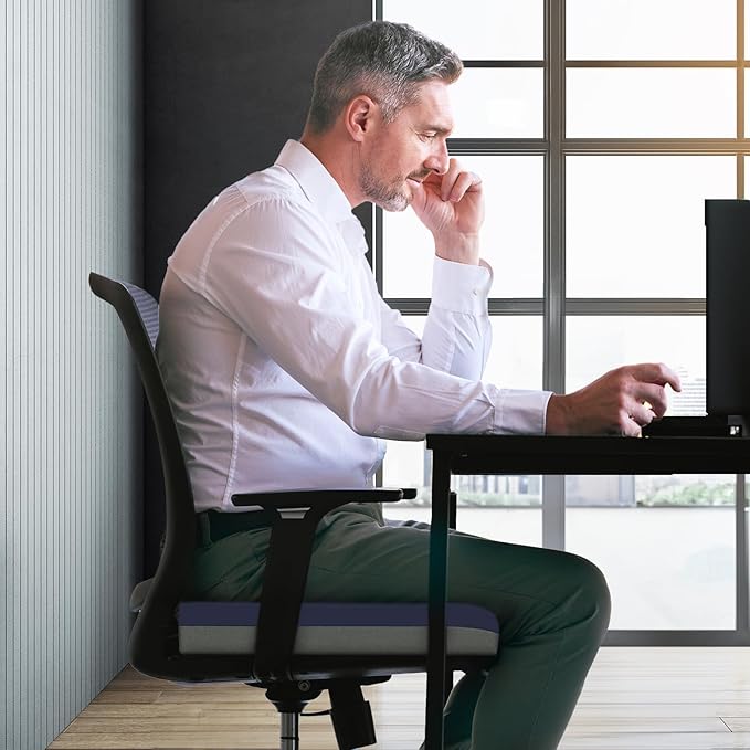 - Supportive Memory Foam. This chair cushion's high quality memory foam provides long-lasting comfort, molding to your shape while preventing flattening over time. It can well relieve lower back, coccyx, and sciatica pain caused by long-sitting.
