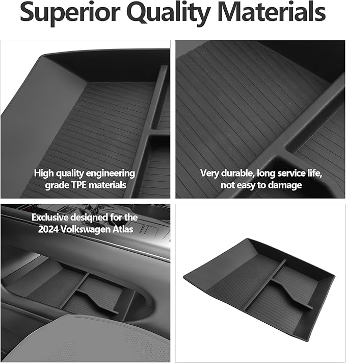 - [No Complicated Installation Required] Easily disassemble the 2024 Atlas VW accessories,car center console storage box, and directly insert the 2024 Atlas VW armrest console organizer into the center console, without modification, no cutting/tools. The 2024 Atlas center console organizer overall texture structure can be well integrated with the shift console, without abrupt display