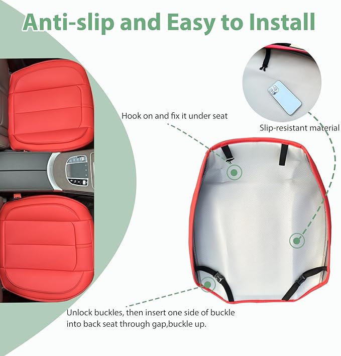 - ANTI-SLIP AND SECURED - The black seat bottom cushion is with anti-slip dots to make the seat at its place, so it will not move around. Buckles and hooks can also fix the seat cover, you will not be bothered.