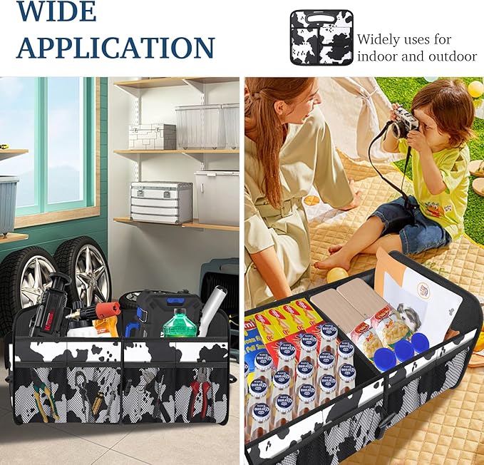 - 【Trunk Organizer for Car】:This is the optimal solution for maintaining a clean car interior as car accessories. Suitable for all vehicle types, like trucks, SUVs, vans, jeeps, cars, etc., and it's fantastic for transporting and arranging groceries, toys, athletic equipment, tools, and more in your trunk. Eliminate trunk clutter situation with this car organizer.