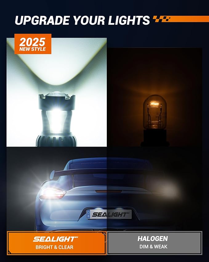 - 【1:1 Wedge Base】SEALIGHT 7443 7440 compact 1:1 same size with original bulb,No-Polarity design and Plug & Play.allowing for quick installation even if without installation experience.Please carefully check the owner's manual or the original bulb size before ordering.