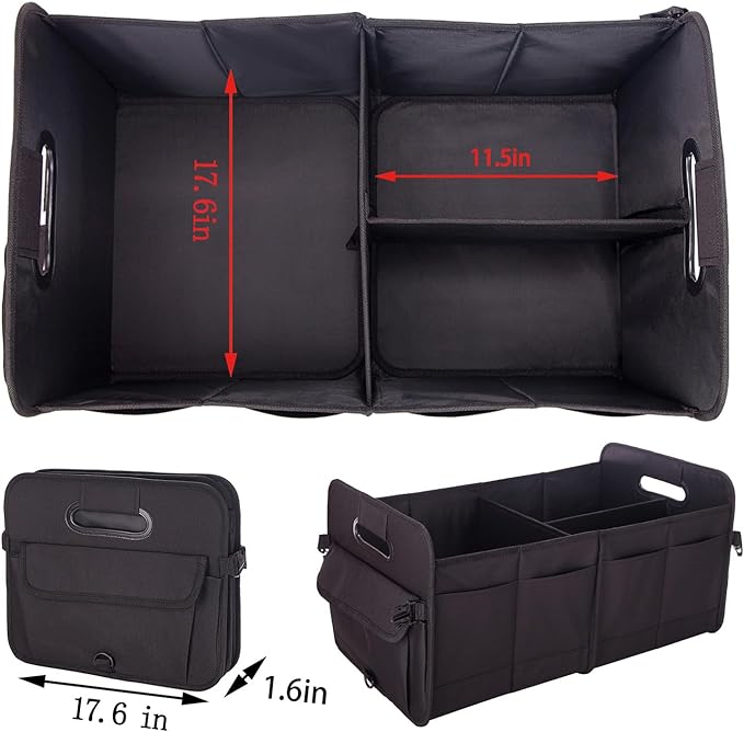 - Foldable Car Organizer for Easy Storage: Adjustable compartments fit all vehicle types (sedans/SUVs/trucks). Collapses flat when unused,Folds flat in seconds with buckle straps—saves 80% space when not in use-good for car organizers and storage on the go.