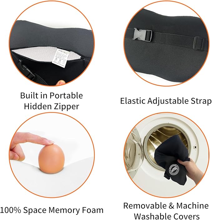 - High-Quality Memory Foam - 100% pure space memory foam is used inside the car neck pillow to comfortably support the head and neck. Maintain the correct driving posture to provide you with a comfortable driving experience. The car headrest pillow is made of slow-rebound memory foam for a comfortable ride.